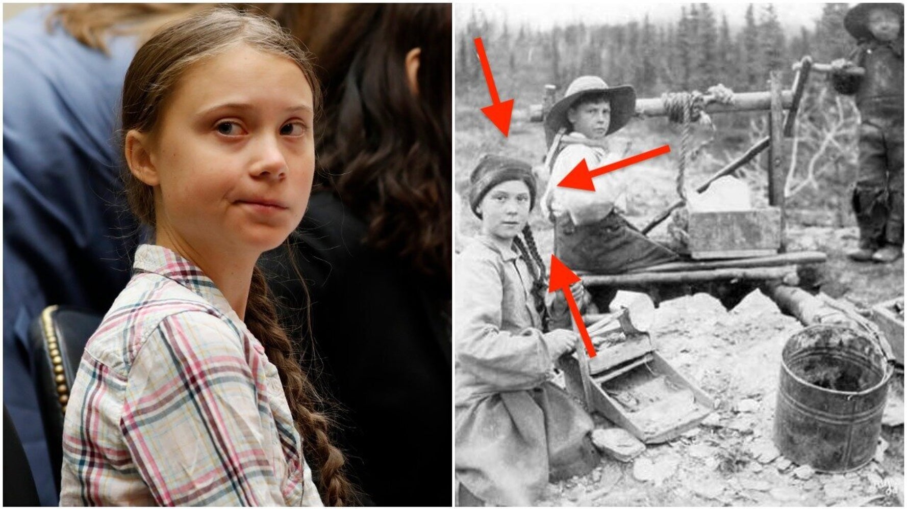 Greta Thunberg may be stoutly opposed to coal mining but was she a gold miner in a past life. And by proof I mean this photo of a young girl who looks exactly like Greta Thunberg something that was pointed out by author JS. Conspiracy theorists are out in force convinced a 120-year-old photo listed in the archives of the University of Washingtons library proves the teen climate activist is a time traveller.